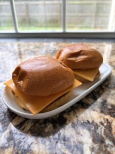 My favorite bread to use is a brioche bun. You can find these in the bread or bakery section at most grocery stores. Not a fan of brioche buns? Switch for your favorite breakfast bread and make it your own! You could use bagels, biscuits, regular sandwich bread, english muffins – anything you love! Whatever you are using, I recommend toasting the bun so it doesn’t get soggy!